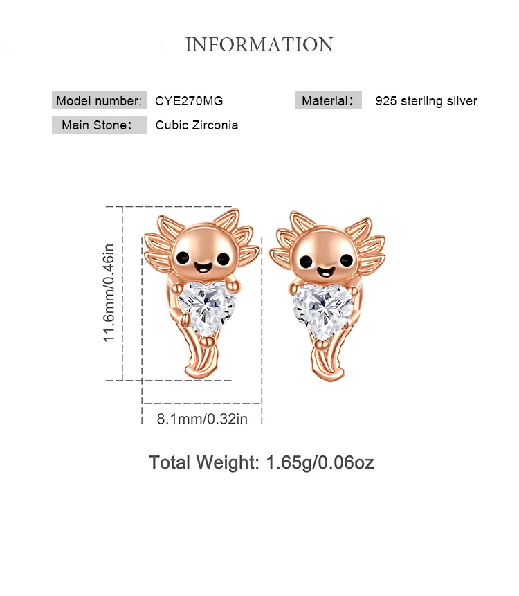 Cute Axolotl Stud Earrings Eudora 925