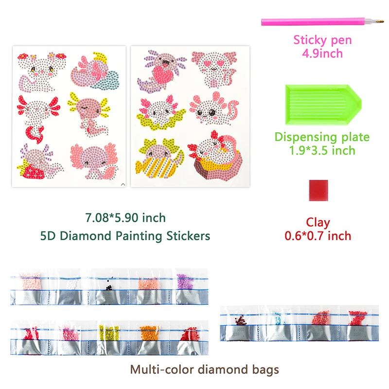 Non-Toxic Material: Our axolotl diamond painting stickers are designed for children, Made of eco-friendly and high-quality acrylic, odorless and safe, the art diamond painting is a good gift for kids.