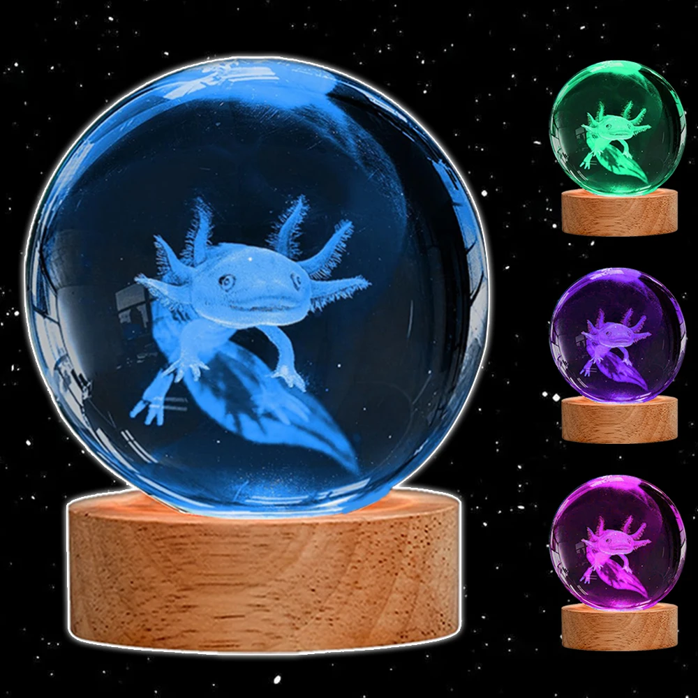 1pc 3D Axolotl Night Light Crystal Ball Lamp.