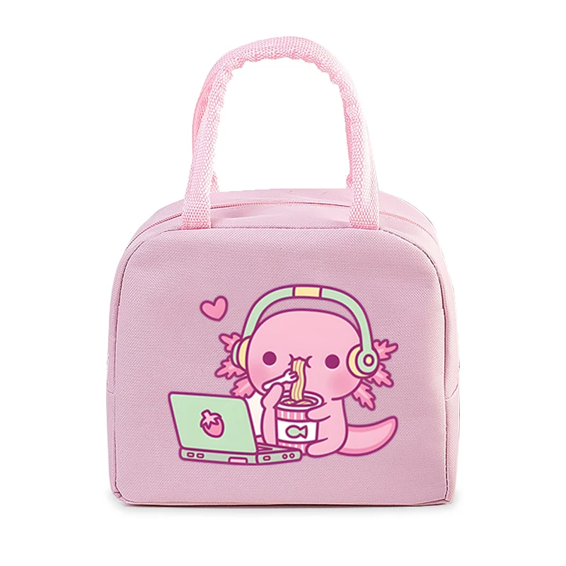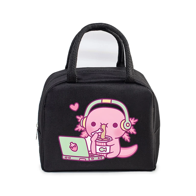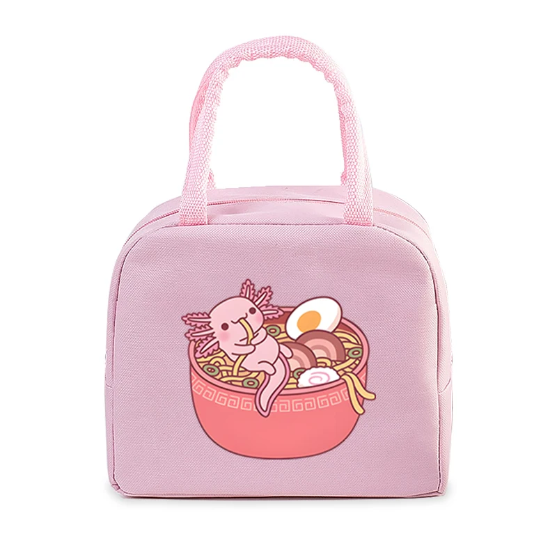 Axolotl Ramen Cartoon Print Women Men Lunch Bag Fashion Animal Portable Insulated Bags School Multifunctional Bento Food Handbag