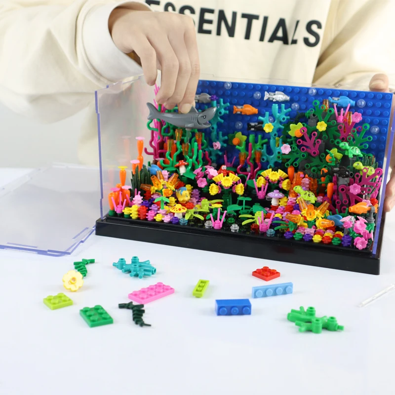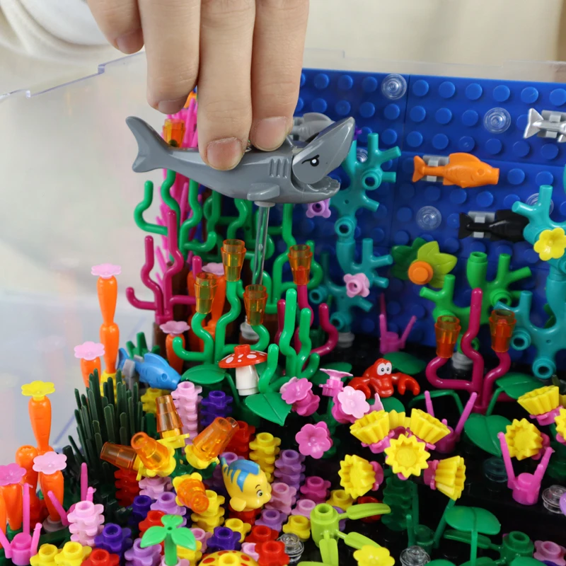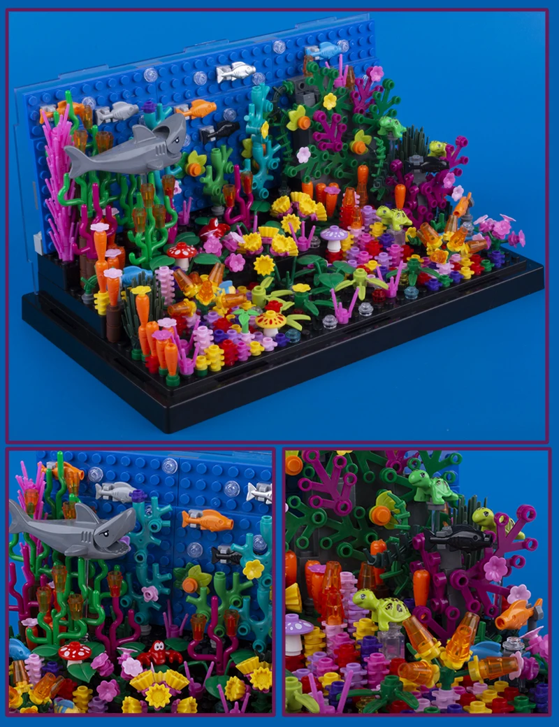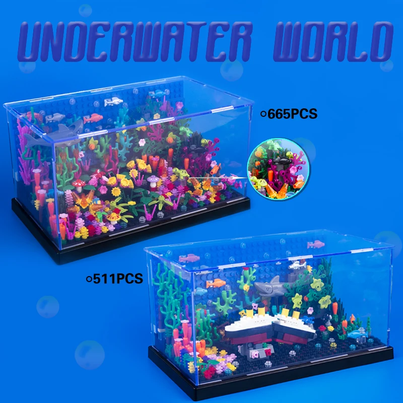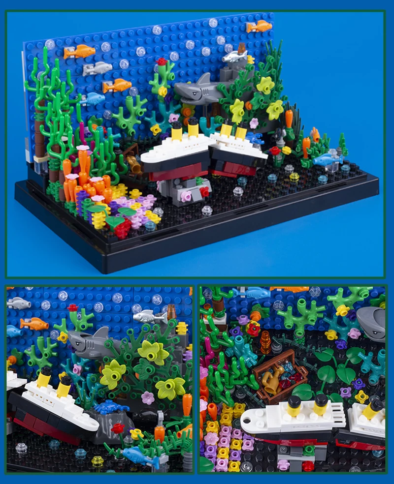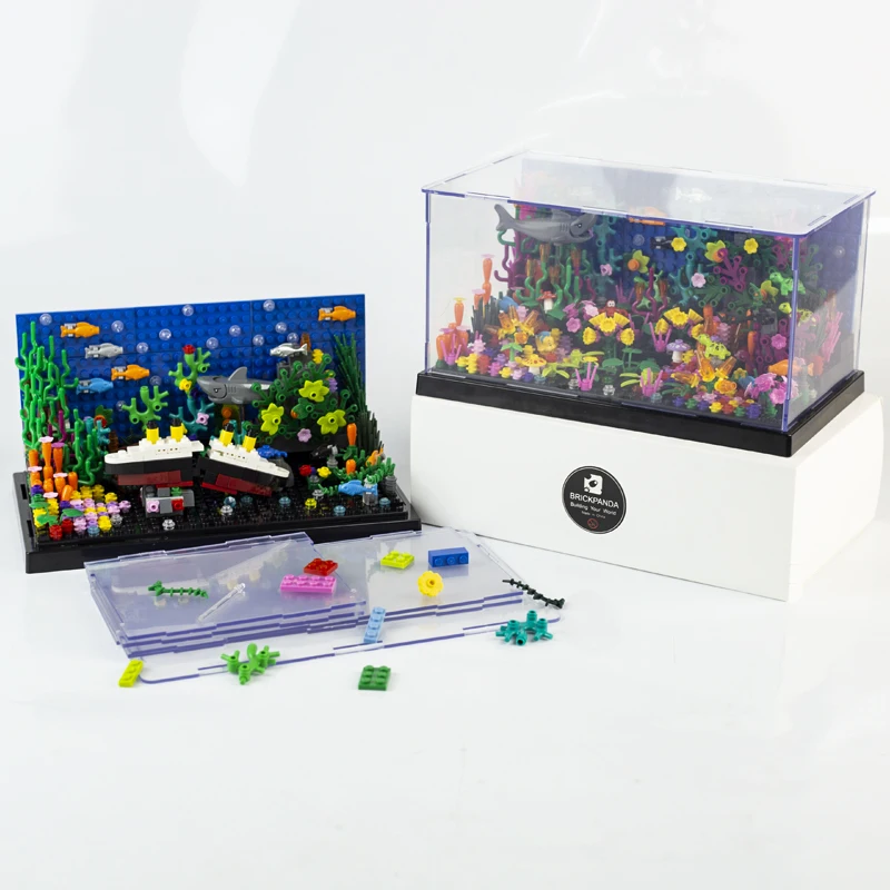 Axolotl Tank Decoration With Underwater World Building & Titanic Shark Treasure Box.