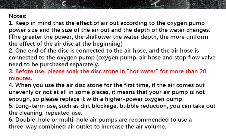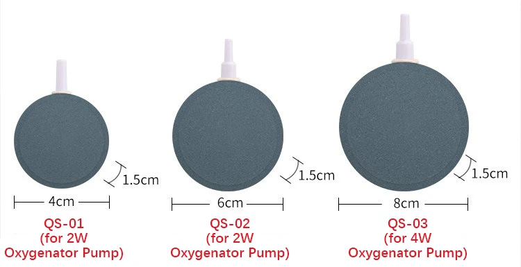 Product specification: flat air disc stone 4cm, flat air disc stone 10cm, half round bubble stone 8cm, half round bubble stone 12cm