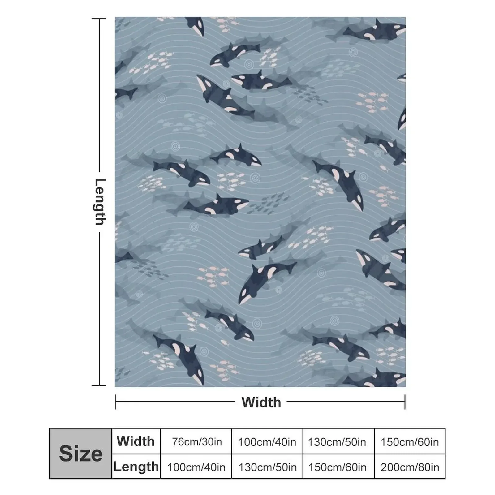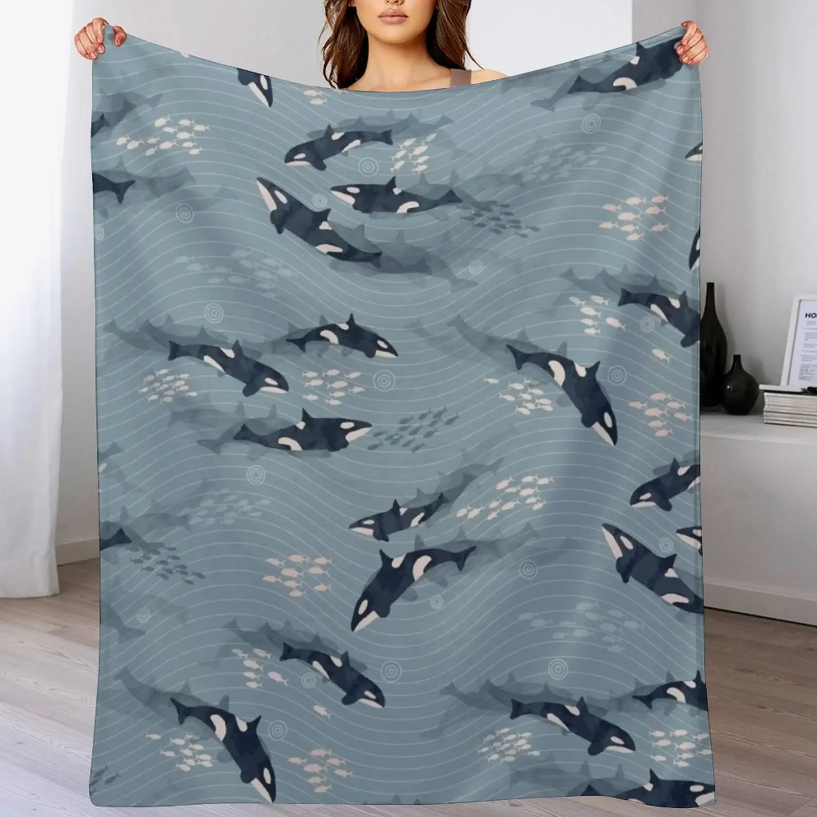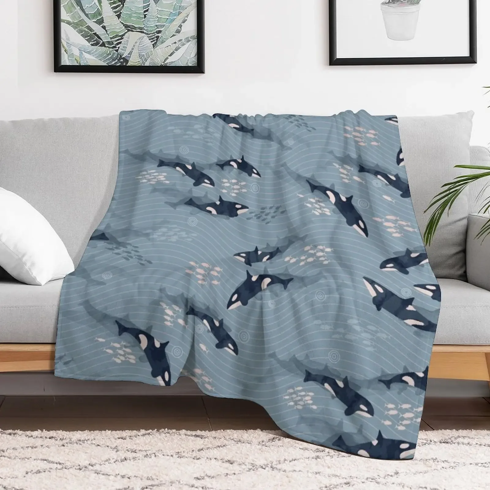 Orca in Motion blue-gray ocean pattern Throw Blanket.