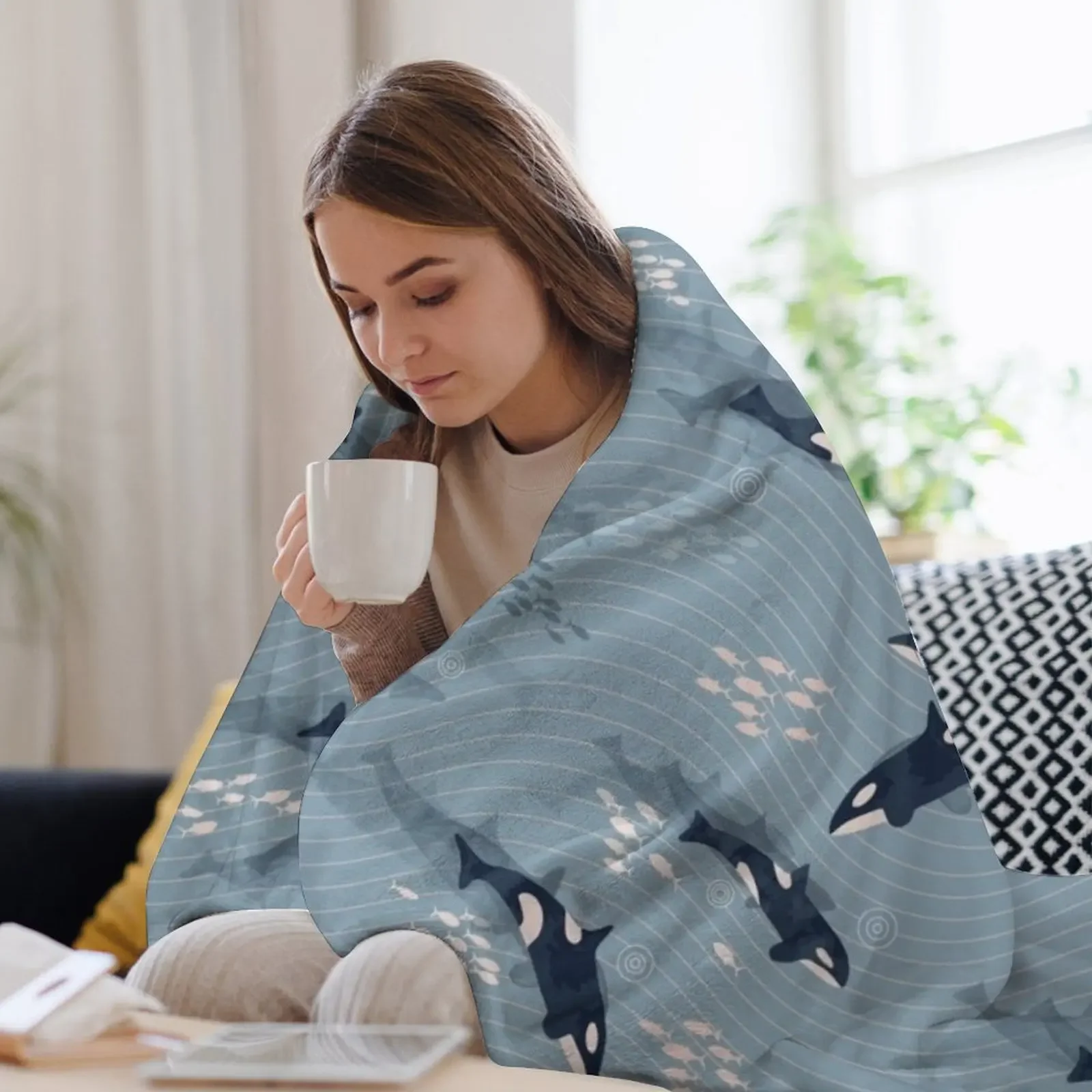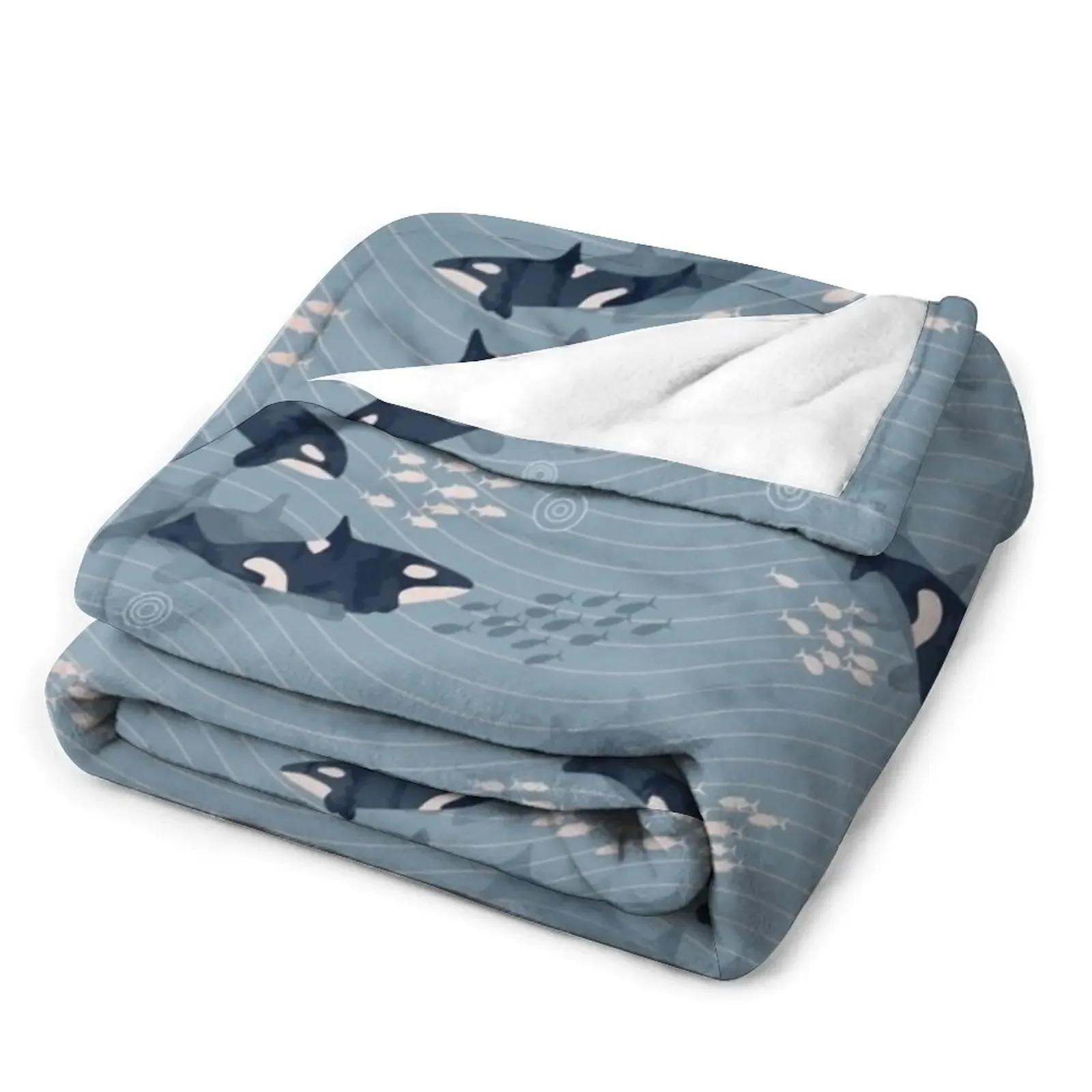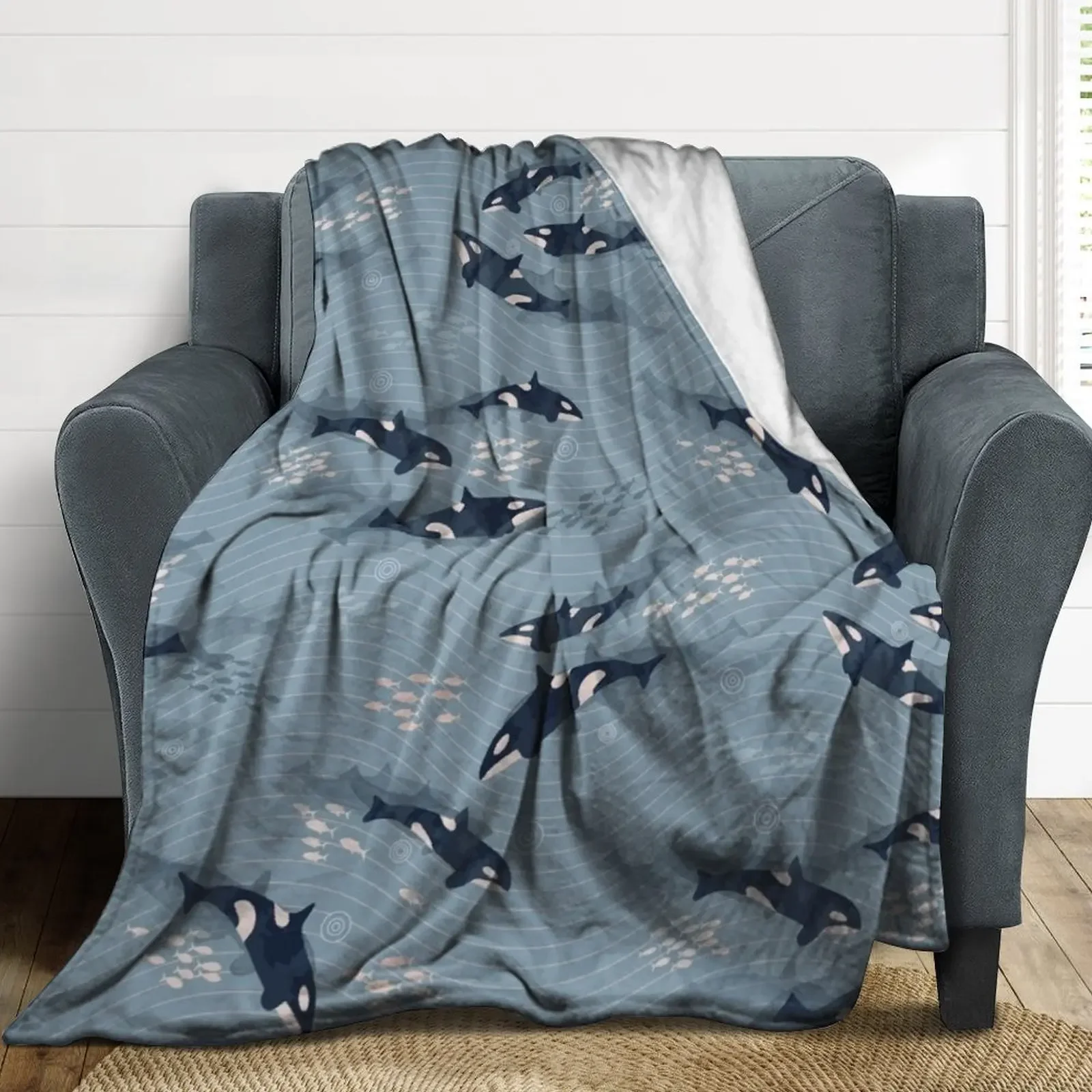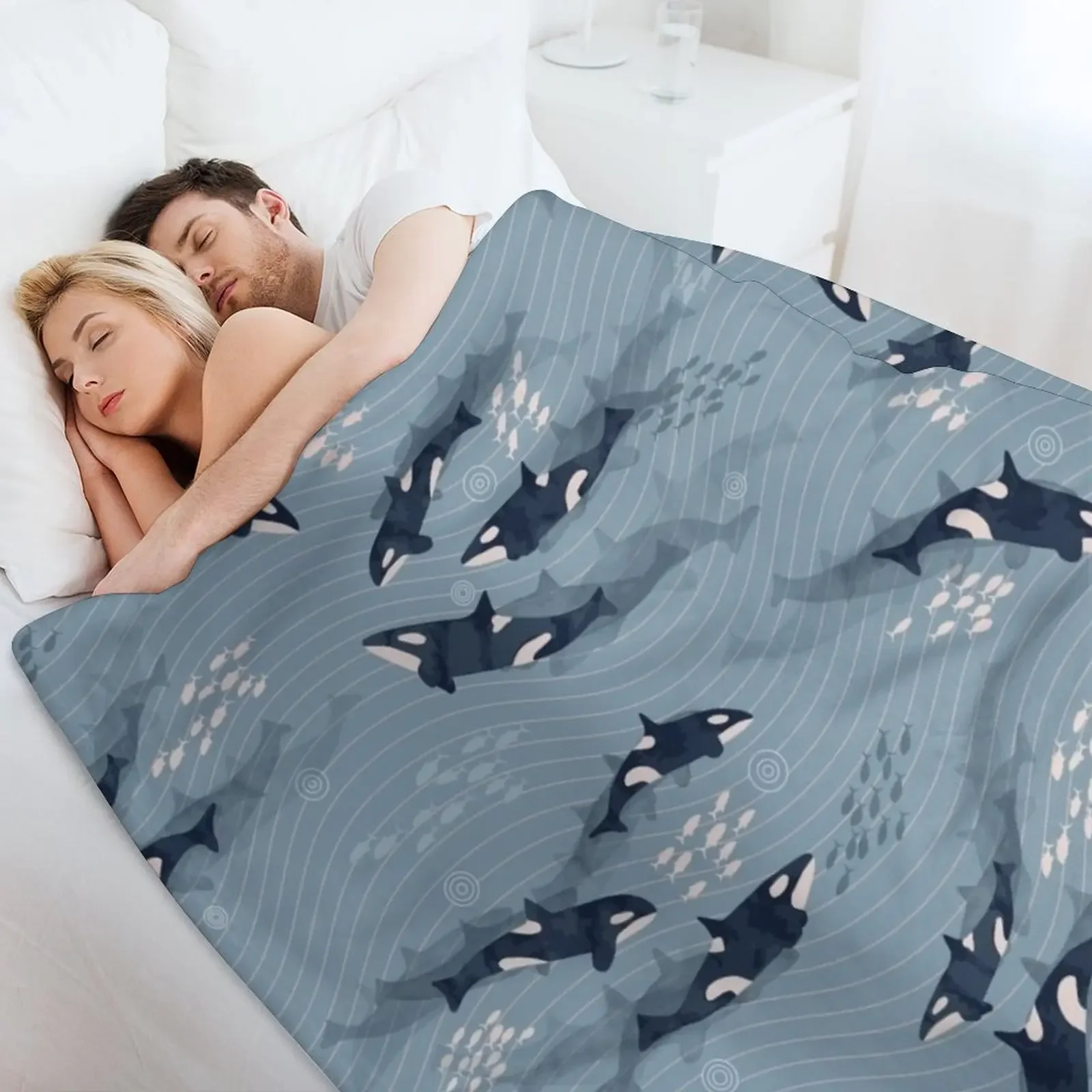 Orca in Motion blue-gray ocean pattern Throw Blanket.