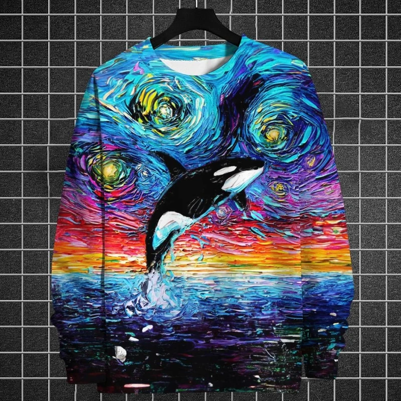 Orca Oil Paint Printed Long Sleeve Sweatshirt